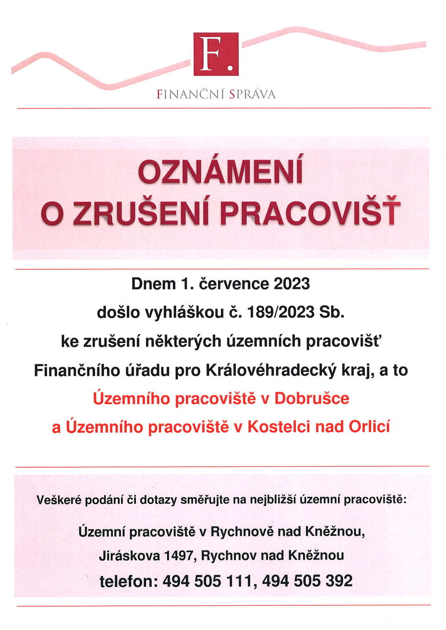 Úvod > Obec > Aktuality > Oznámení o zrušení pracovišť
